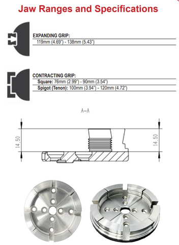 confidence. Deep internal serrations provide exceptional hold for spigots, making them perfect for green and dry wood turning, and precision-cut slots ensure
